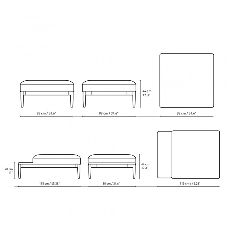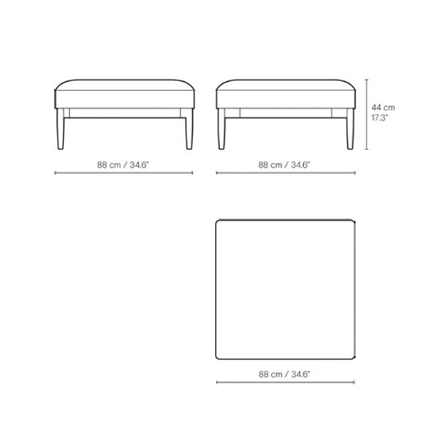 Reposapiés de madera maciza y asiento tapizado en lana. Diseño por EOOS.