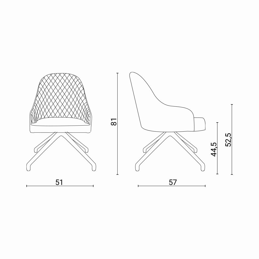 Sillón giratorio 360º con estructura en metal con revestimiento de grafito mate o bronce. Su asiento ciene tapizado de terciopelo, ecopiel nabuk suave o piel suave acolchado en el interior. El modelo silla-sillón Gilda es simple, funcional y de acabados impecables para tu salón o comedor.