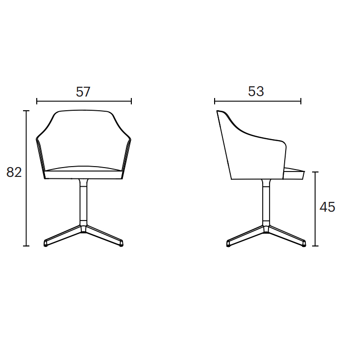 Silla con brazos en carcasa de roble fija o giratoria. Dimensiones: 57x53x82h cm.