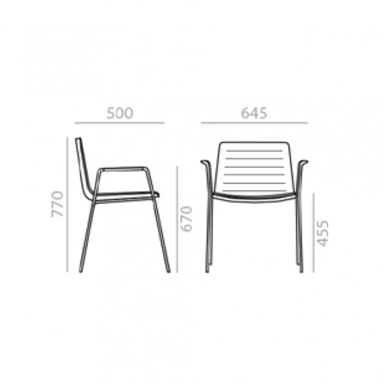 Sillón con carcasa de termopolímero Eco sobre base de 4 patas de tubo de acero. Opciones disponibles: Carcasa tapizada y tapizado con costuras paralelas.* En versiones tapizadas la altura de asiento aumenta 20 mm.