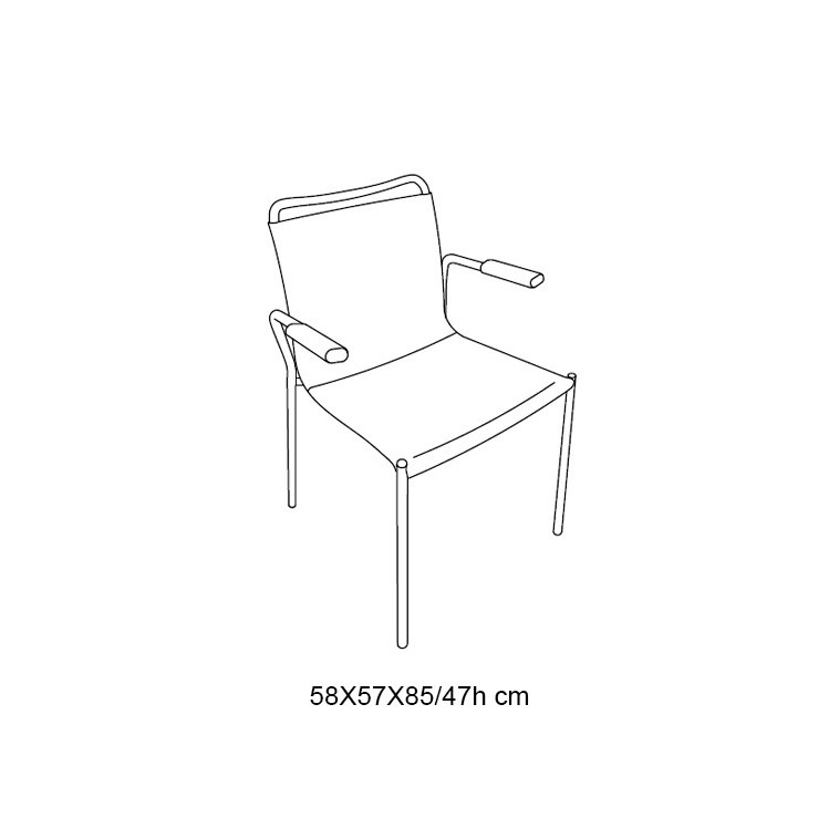 Silla con brazos con estructura de acero lacado y asiento tapizado en cuero. Dimensiones: 58x57x85h cm.