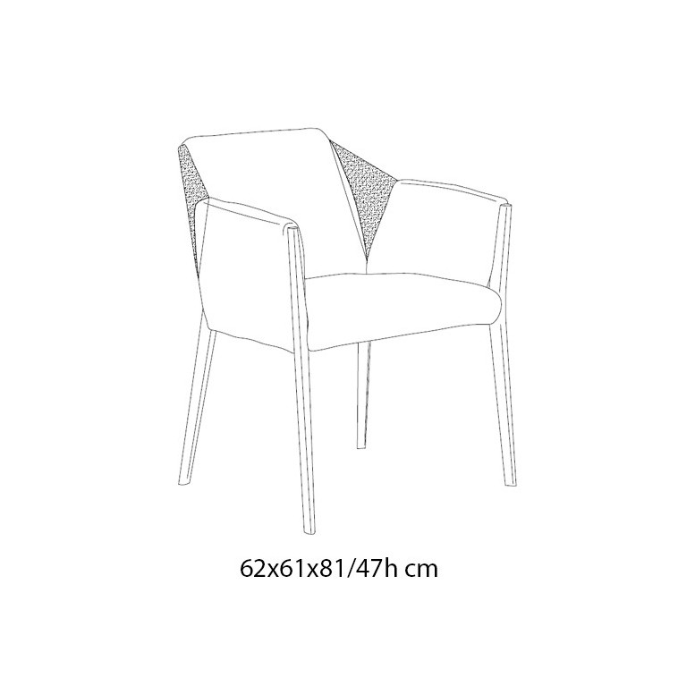 Sillón con estructura en madera, tapizado con secciones triangulares. Dimensiones: 62x61x81h cm.