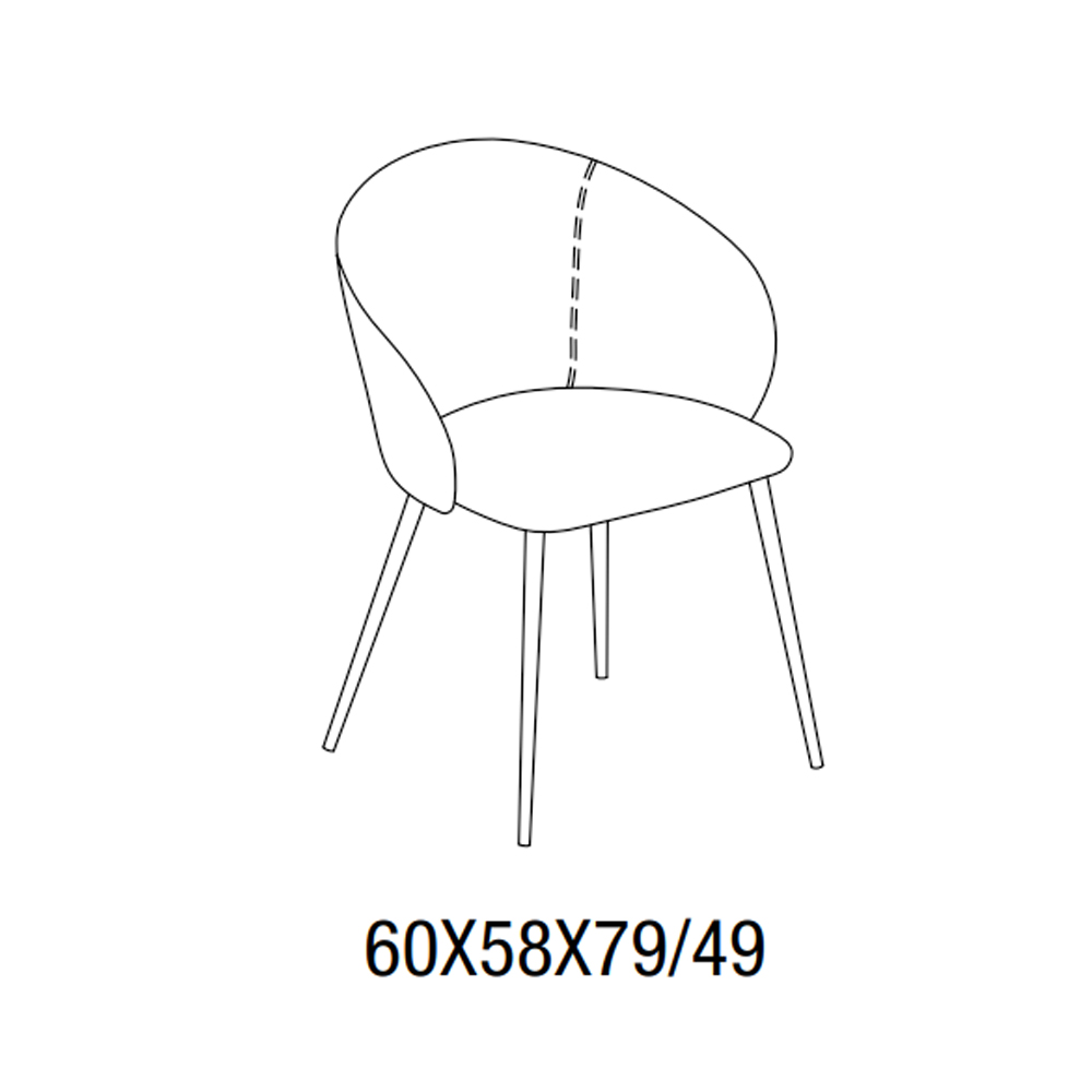 Silla con brazos de estructura en acero, asiento y respaldo acolchados. Dimensiones: 60X58X79h cm.
