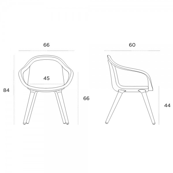 La estructura de la silla está realizada en nogal canaletto macizo. El asiento y respaldo tapizados y tapizados en tejido o ecopiel.