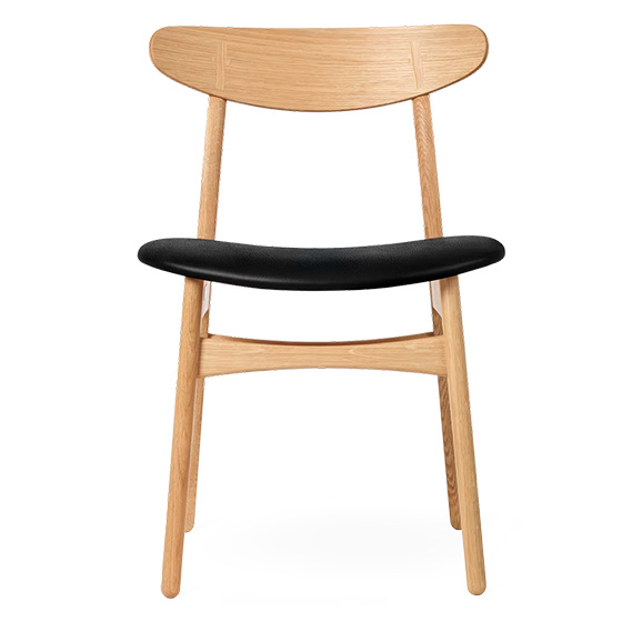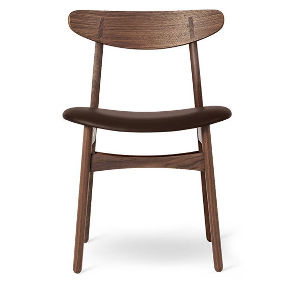 El CH30 está fabricado en roble o nogal en varios acabados y cuenta con un asiento acolchado tapizado en piel.