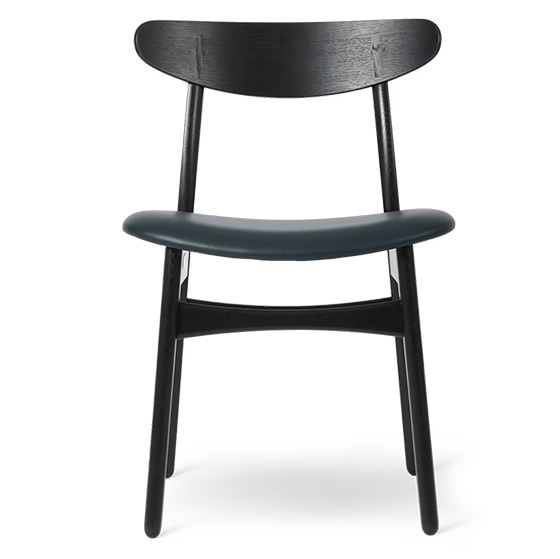 La moderna silla de comedor CH30 muestra el estilo característico de Wegner, líneas orgánicas hechas con una artesanía excepcional que se puede apreciar en los detalles sofisticados, como las tapas cruciformes en el respaldo curvo y ovalado que se inclina hacia atrás en línea con las patas traseras, lo cual le otorga la máxima comodidad al estar sentado. Las cuales se combinan además con el asiento acolchado ancho y prensado que convierte a la silla CH30 en una pieza de diseño con un alto nivel de comodidad y funcionalidad.