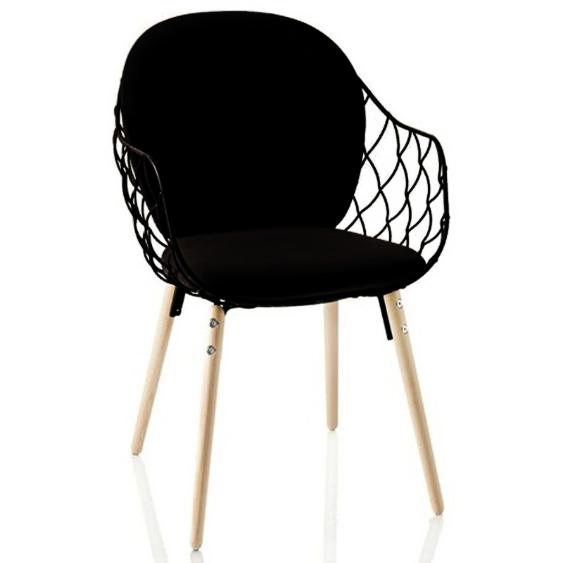 La moderna silla Piña Tapizada de Magis está fabricada con una estructrua de cuatro patas de madera de fresno macizo, disponible en acabado natural o pintado.