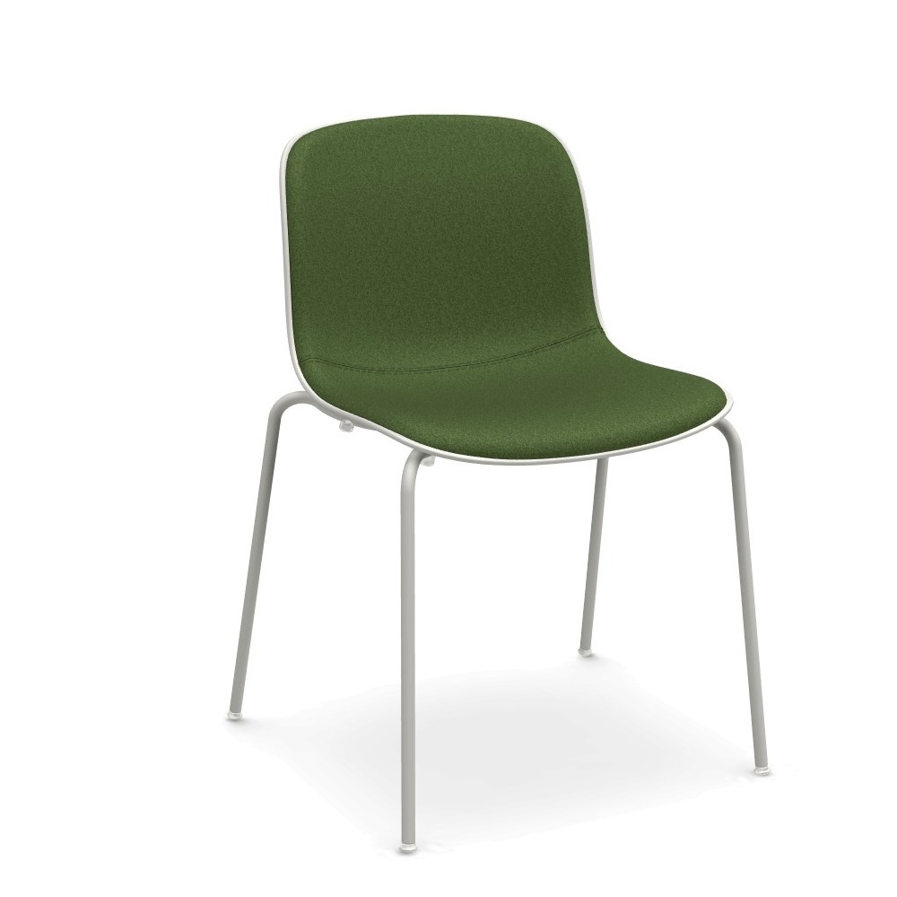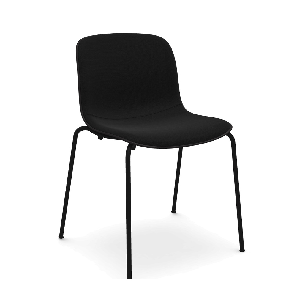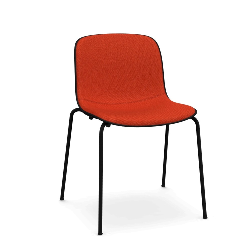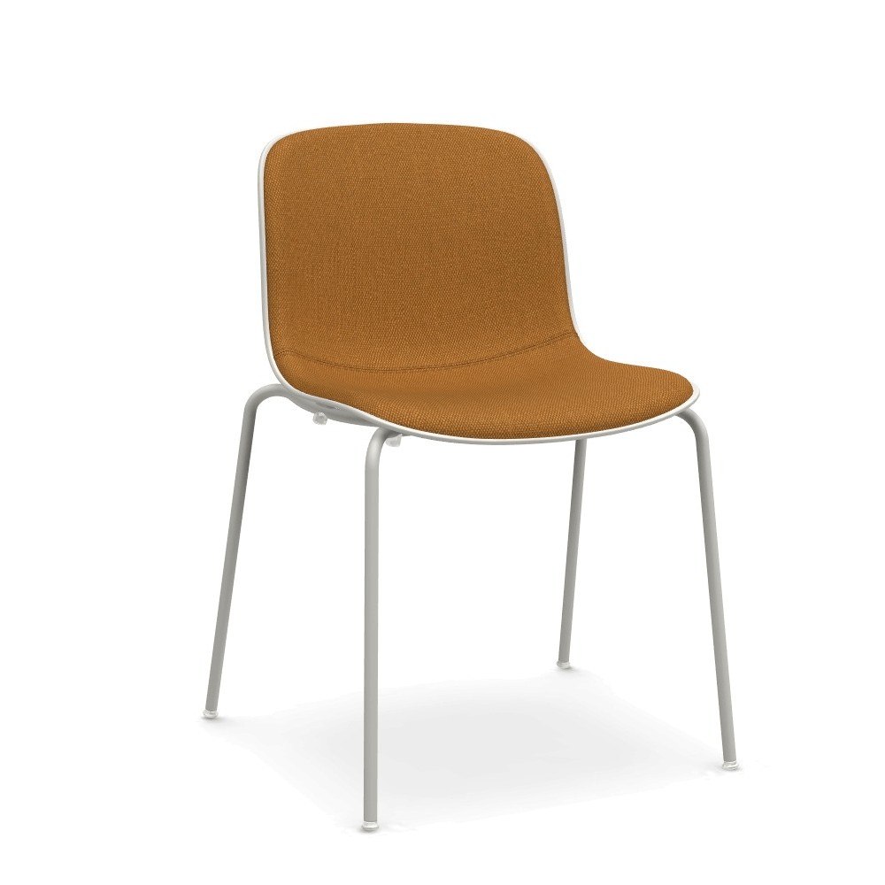 La silla moderna Troy de Magis está fabricada con una carcasa de polipropileno tapizada en la parte frontal en poliuretano expandido, ignífugo (Crib5) en tela Kvadrat o en piel Boxland.