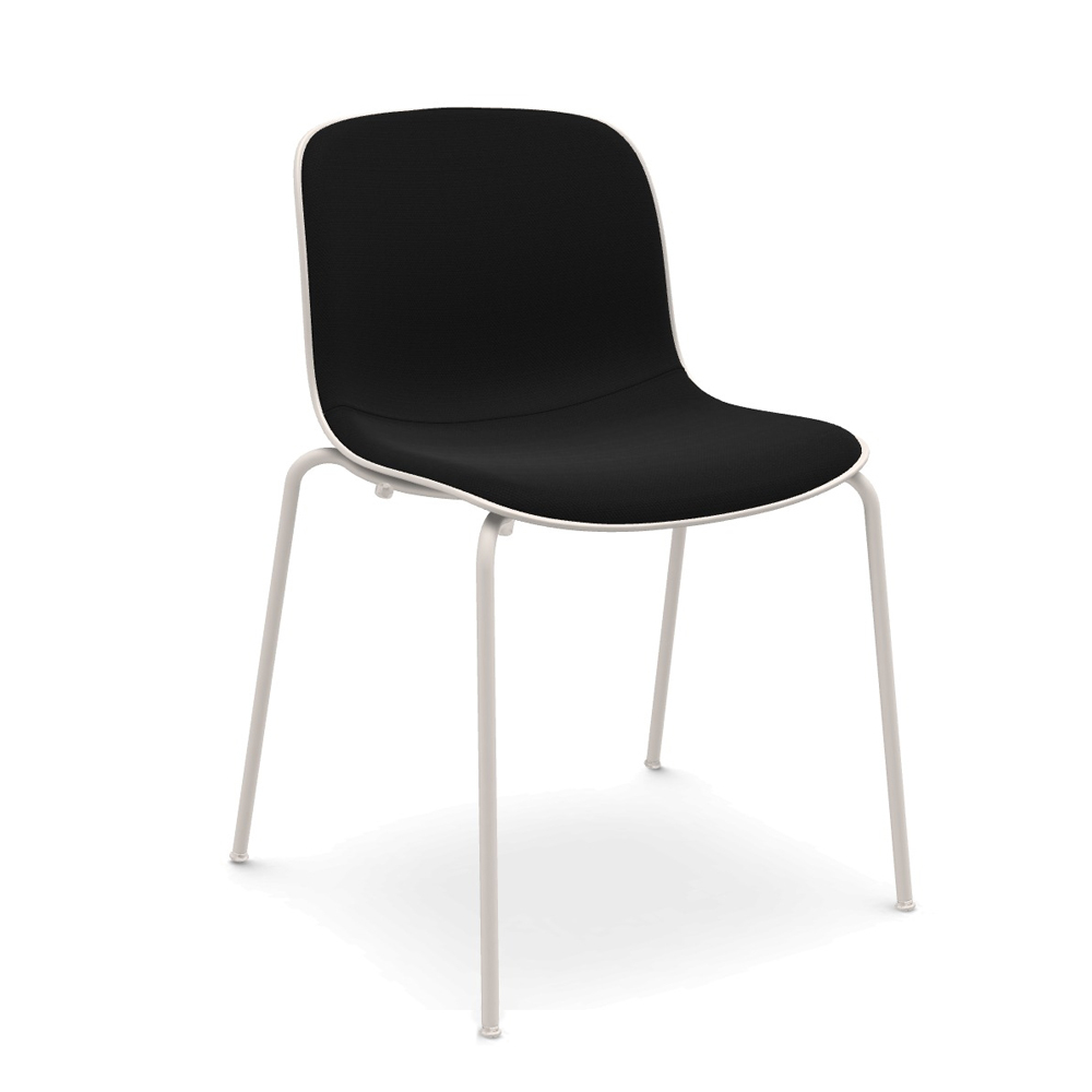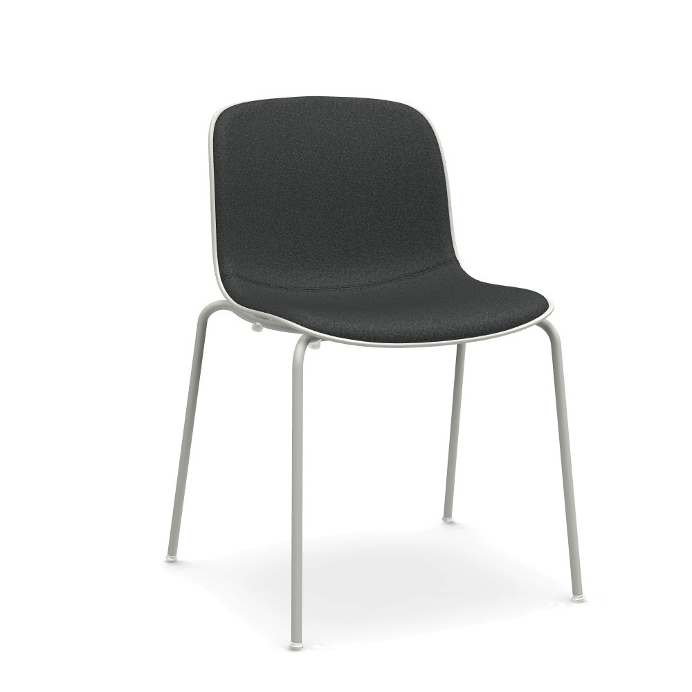 Silla con carcasa de polipropileno, tapizado frontal y pies de acero. Diseño Marcel Wanders.