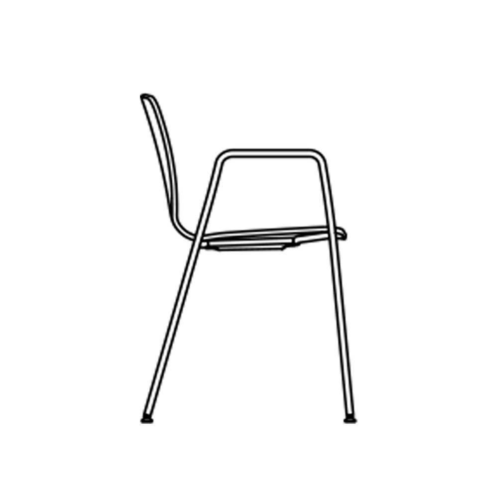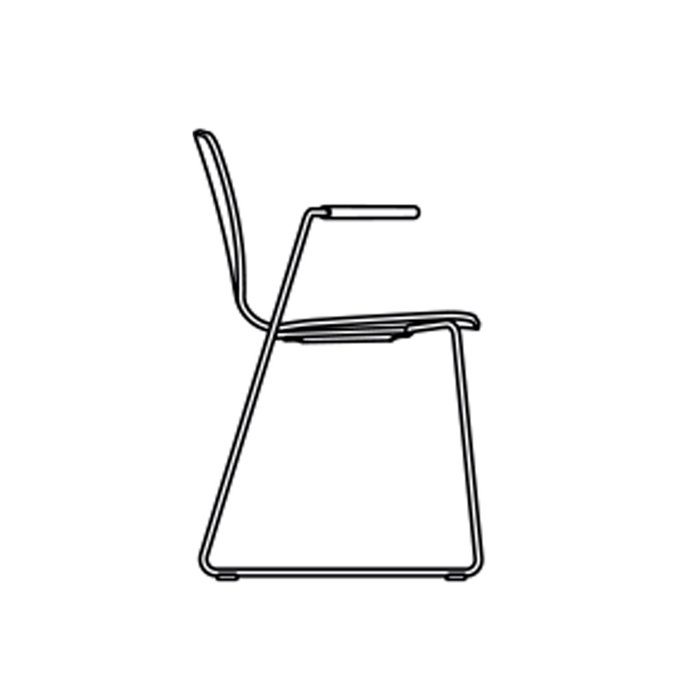 Silla con brazos con carcasa de madera y base de 4 patas o trineo de acero.