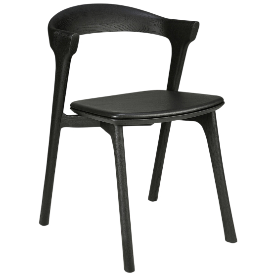Su estuctura está elaborada en madera de roble macizo barnizado o teñido en negro, y en esta versión cuenta con un cojín tapizado en tela o cuero para mayor comodidad.