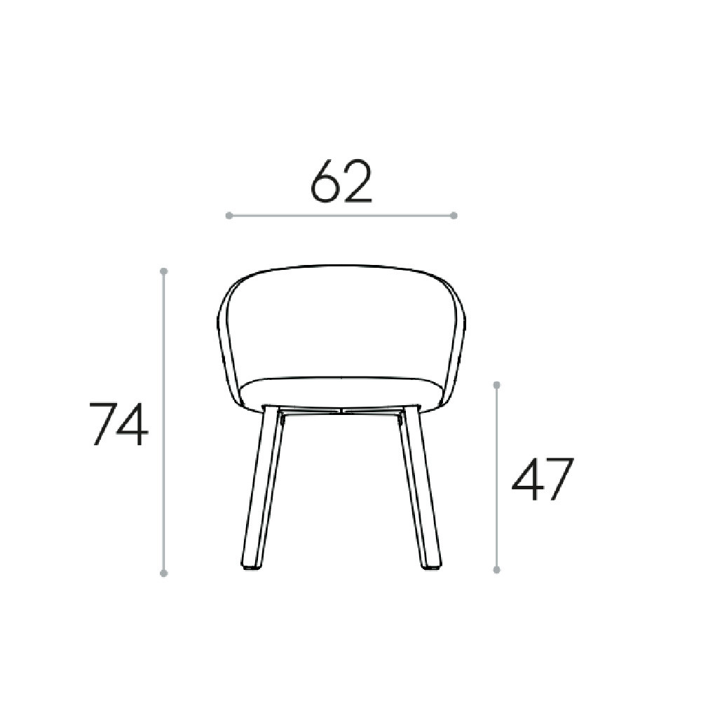 Sillón envolvente tapizado con base de 4 patas en madera de roble.