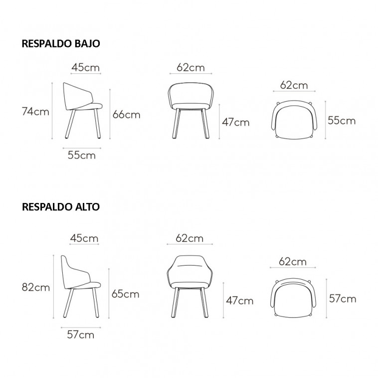 Los sillones envolventes tapizados están disponibles con dos tamaños de respaldo y una base de madera de roble.