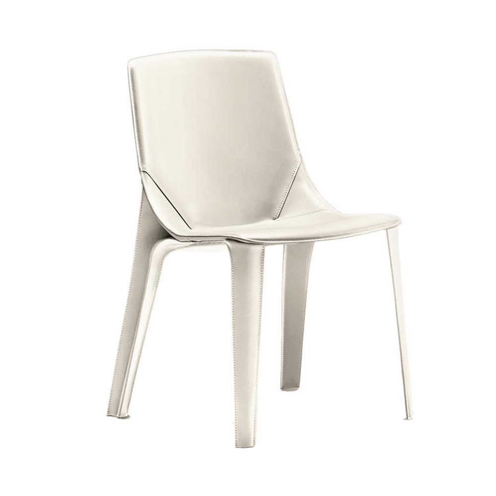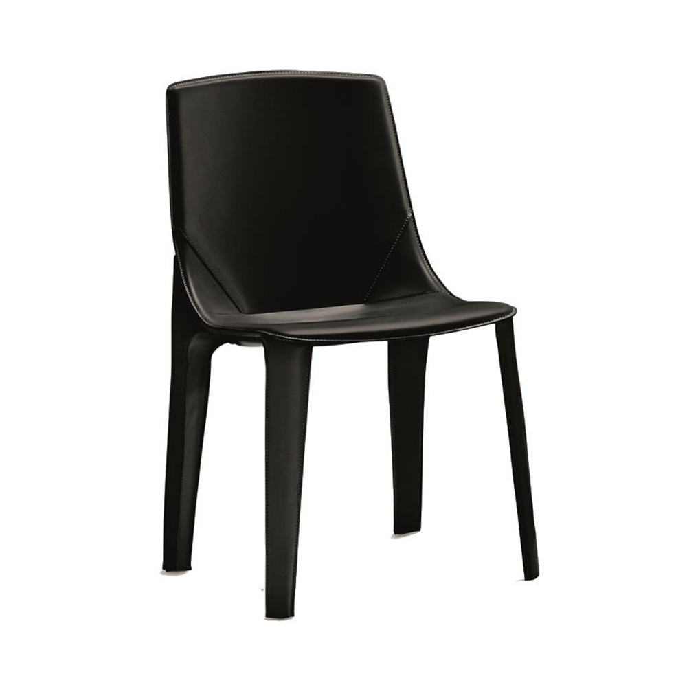 La silla de comedor Callas de la marca italiana Fiam tiene una estructura interna de perfil tubular en metal y completamente tapizada en cuero.