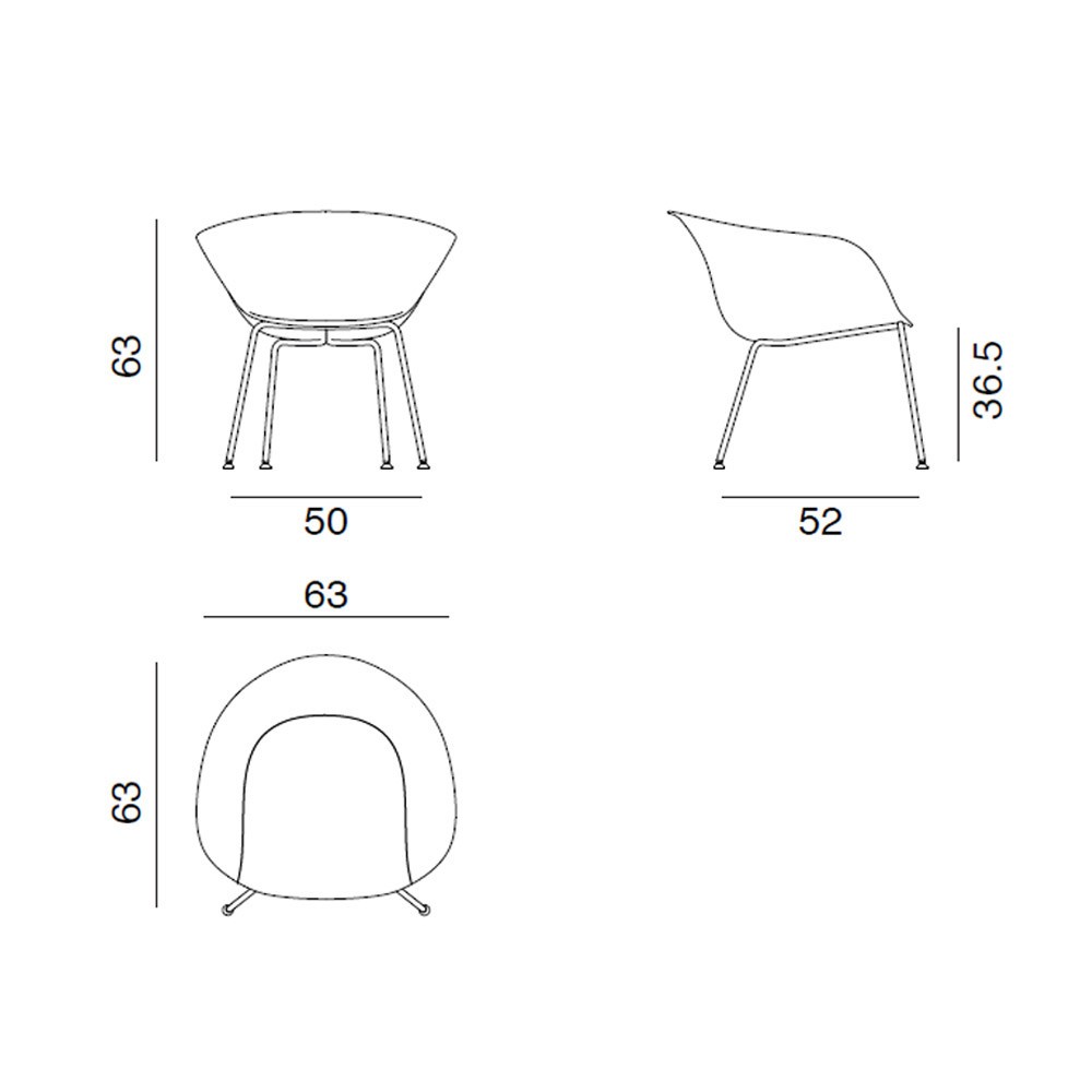 Silla lounge curvo estructura cuatro patas de acero con carcasa de polipropileno.