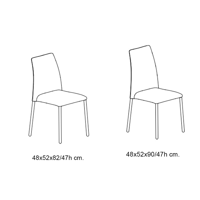 Es una silla con estructura de acero lacado y asiento tapizado en tejido penny en diversos colores.