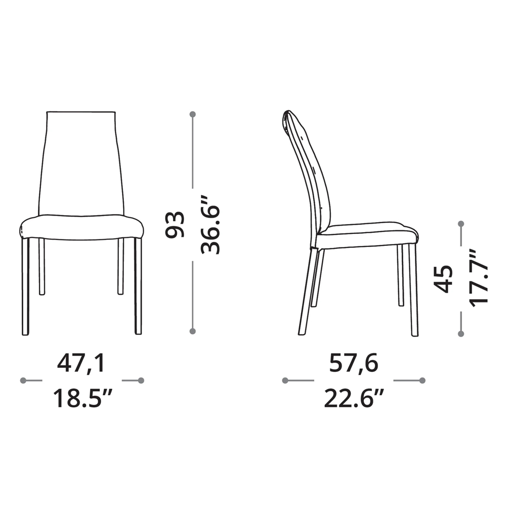 Silla completamente tapizada en cuero suave. Dimensiones: 47,1x57,6x93h cm.