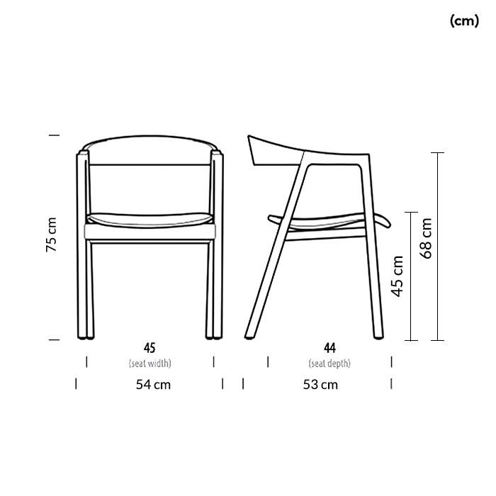 Dimensiones: 54x53x75h cm (Altura de asiento 45h cm)