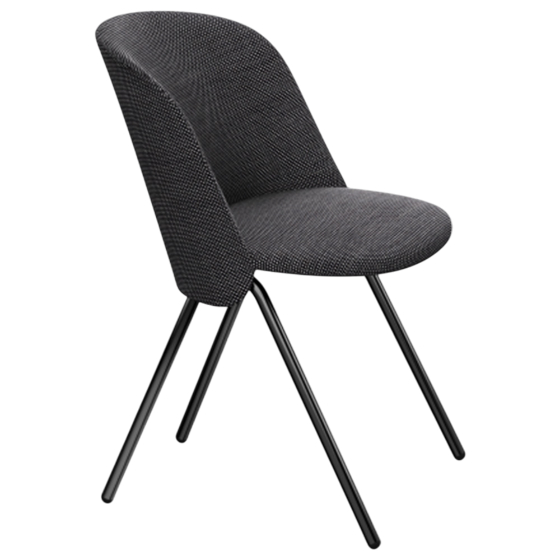 Disponible con base cromada o con acabado negro mediante pintura en polvo, se adapta fácilmente a distintos estilos y espacios. El modelo se puede tapizar en diferentes tejidos, lo que aporta flexibilidad estética y funcional.
