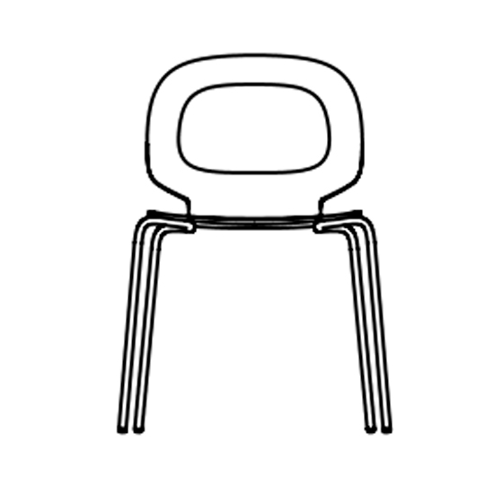 La ligereza que define a cada una de sus versiones se potencia con una original alternativa de respaldo en madera perforada, que sigue la misma silueta ovalada del contorno.