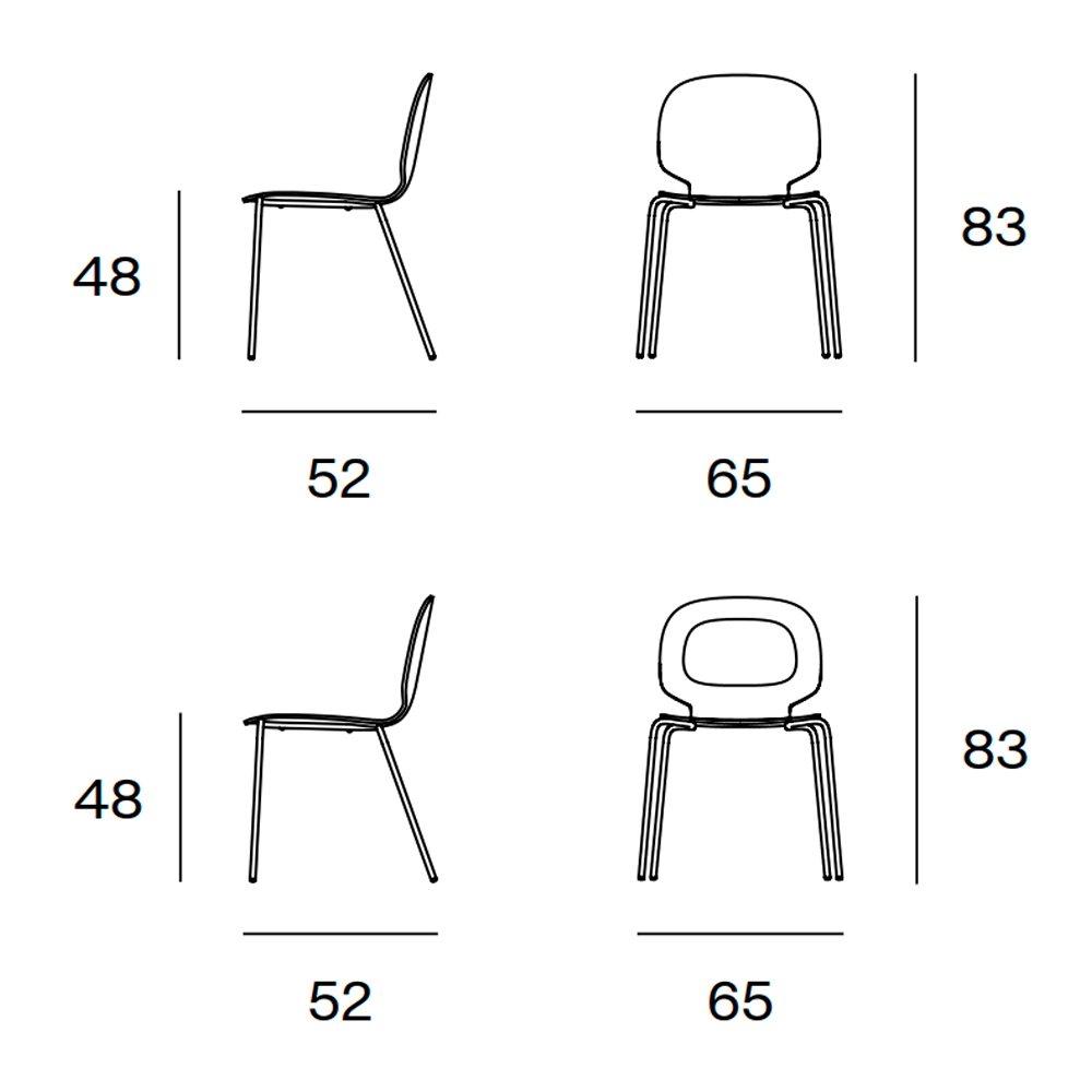 La ligereza que define a cada una de sus versiones se potencia con una original alternativa de respaldo en madera perforada, que sigue la misma silueta ovalada del contorno.