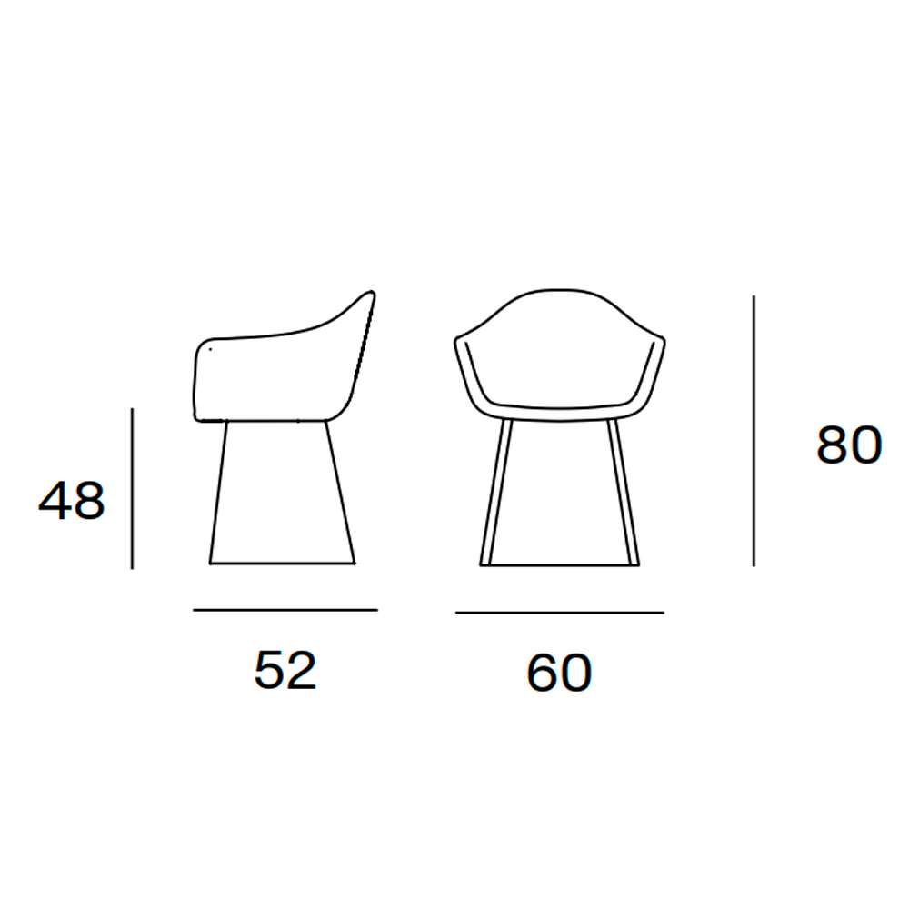 Silla con brazos con base de totem tapizada. Dimensiones: 60x52x80h cm.