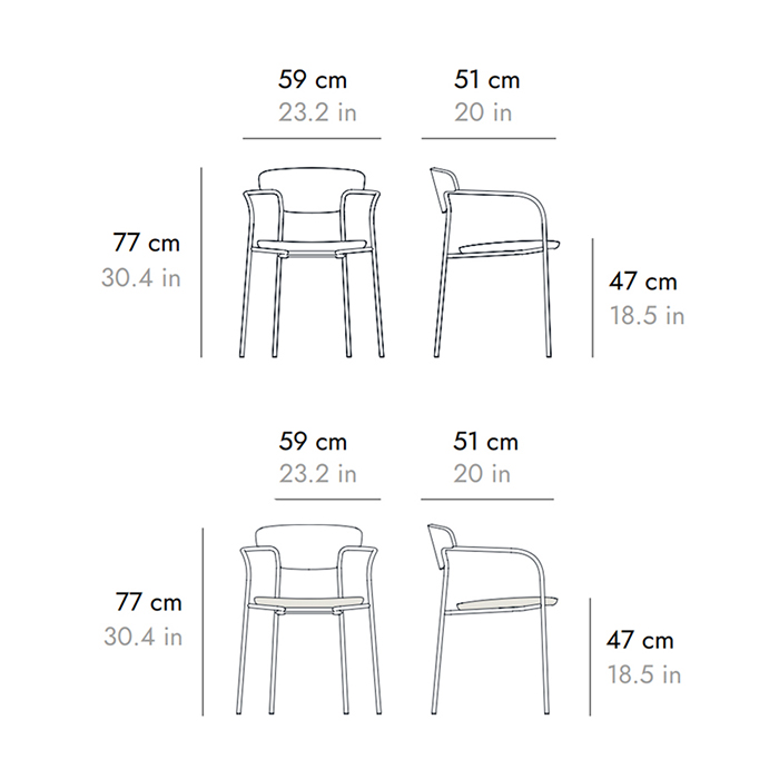 Una pieza versátil, que se puede adaptar a cualquier proyecto de interiorismo, desde salones hasta cocinas, restaurantes u oficinas. La estructura ligera y fina de acero contrasta con la madera, enmarcándola. Además de su estética, se ha trabajo su ergonomía para que tenga un buen confort y su uso, ya que es apilable.