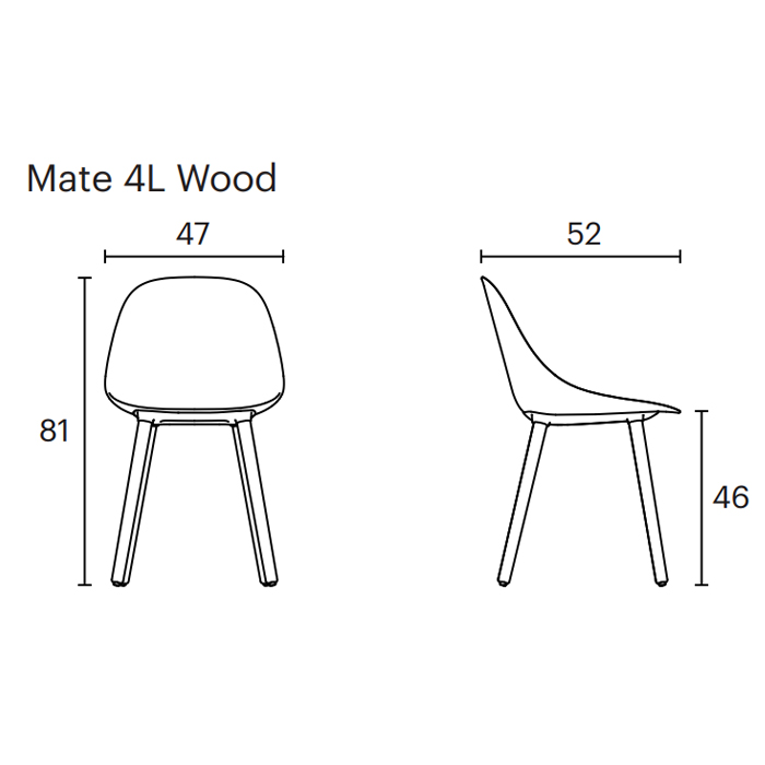 La silla Mate wood, con estructura de 4 patas de roble, cuenta con un gran número de acabados. Es una silla que aporta calidez a cualquier espacio en el que se incluya, desde un hogar hasta una cafetería o restaurante.