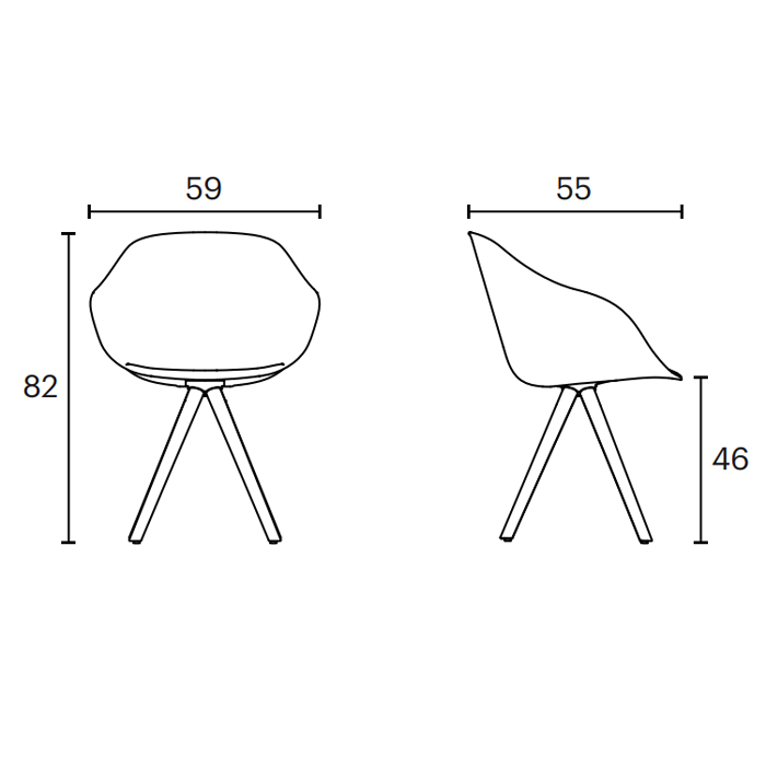 Silla con 4 patas de roble, carcasa en polipropileno y cojín tapizado. Dimensiones: 59x55x82h cm.