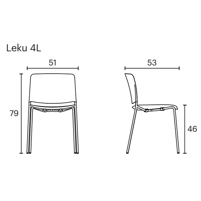 La silla Leku 4L tiene una estructura de cuatro patas de acero lacado en cualquiera de nuestros colores, y su asiento y respaldo son de polipropileno. Se trata de una silla apilable, ligera y versatil que puede formar parte de una cocina o comedor de hogar, así como de cualquier espacio de los sectores contract y restauración.