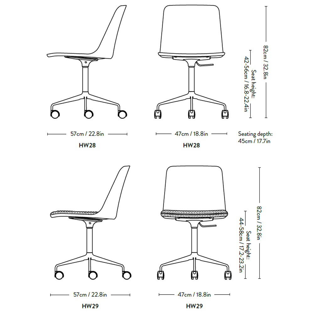 La base giratoria de aluminio fundido con cinco radios incluye elevación a gas y ruedas aptas para todo tipo de suelos. Una opción versátil para espacios de trabajo o reuniones, con enfoque en la sostenibilidad.