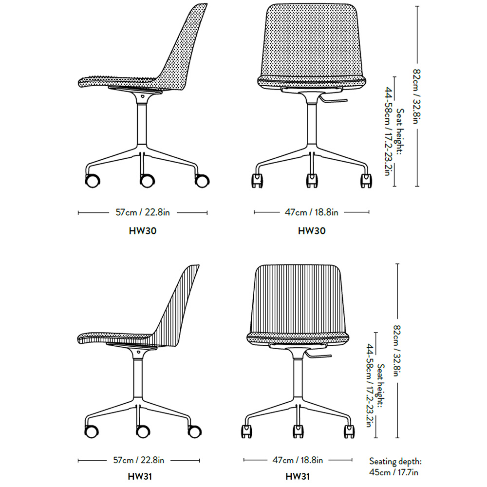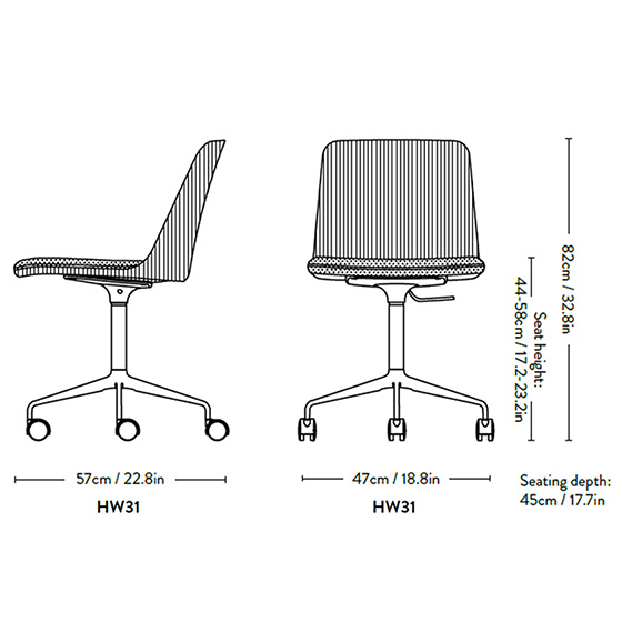 Diseñada por Hee Welling para &Tradition, la silla Rely regulable tapizada combina funcionalidad y sostenibilidad. Su carcasa está fabricada en plástico 100 % reciclado con refuerzo de fibra de vidrio. El asiento incorpora espuma HR tapizada en tela o piel, disponible en una amplia gama de acabados bajo pedido.