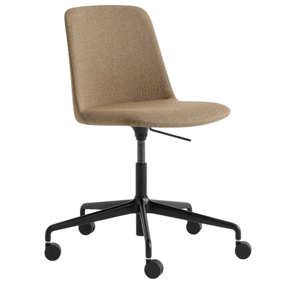 Silla tapizada con base giratoria de cinco radios, elevación a gas y ruedas.