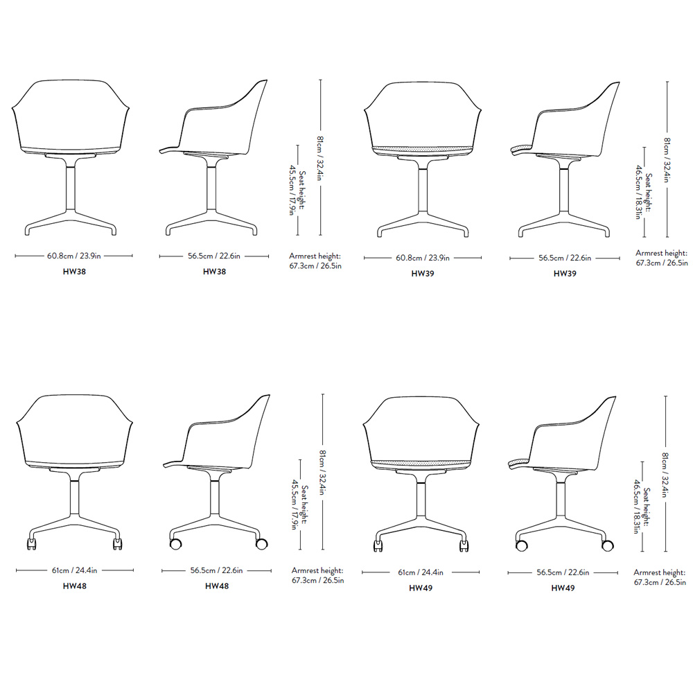 Está disponible con base giratoria de aluminio de cuatro radios o con base giratoria con ruedas, ambas pensadas para facilitar el movimiento y adaptarse a distintas configuraciones de oficina o espacios de trabajo en casa. Una propuesta funcional con enfoque sostenible.