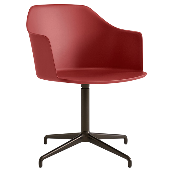 El sillón Rely giratorio de &Tradition, diseñado por Hee Welling, amplía la exitosa colección Rely con una opción pensada para el entorno laboral. Su carcasa compacta, fabricada en polipropileno 100 % reciclado con fibra de vidrio, envuelve el cuerpo y ofrece un buen apoyo en la zona lumbar.