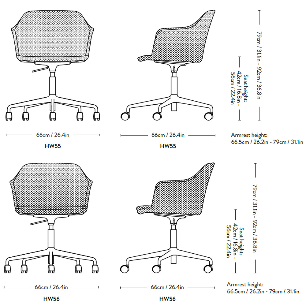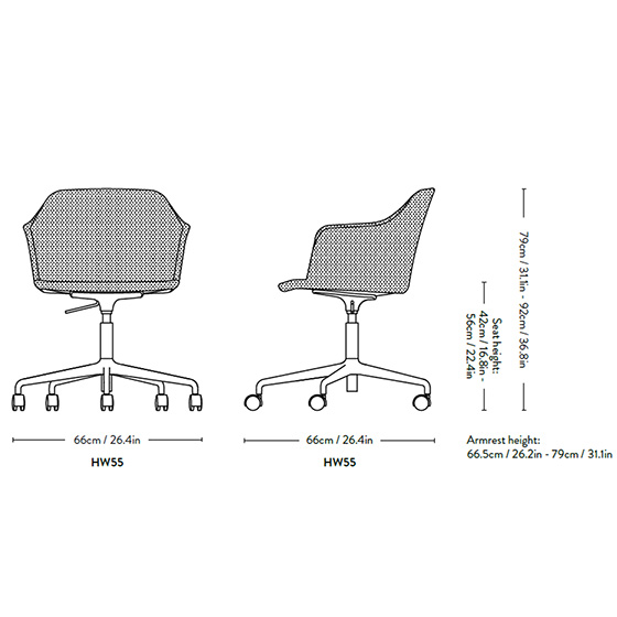 El sillón Rely tapizado regulable de &Tradition, diseñado por Hee Welling, incorpora una carcasa con brazos fabricada en plástico 100 % reciclado y tapizada bajo pedido en una amplia variedad de tejidos. Su diseño ergonómico proporciona buen apoyo lumbar, pensado para largas jornadas de trabajo.
