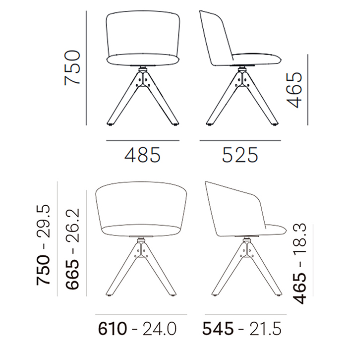 • Base de 4 patas de fresno, giratorio conmecanismo de retorno
