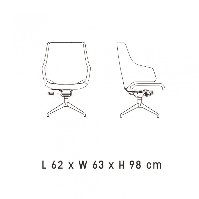 Silla con respaldo bajo y base de 4 radios. Diseño de Favaretto & Partners.
