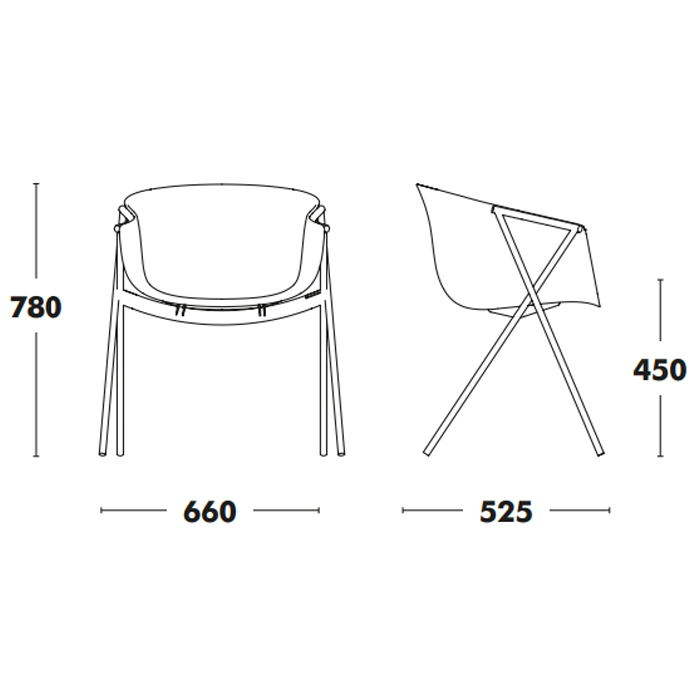 Silla con carcasa tapizada con 4 patas de acero. Dimensiones: 66x52,5x78h cm.