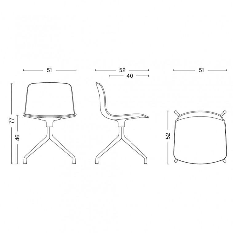 Silla tapizada con estructura giratoria de aluminio. Dimensiones: 51x52x77h cm.