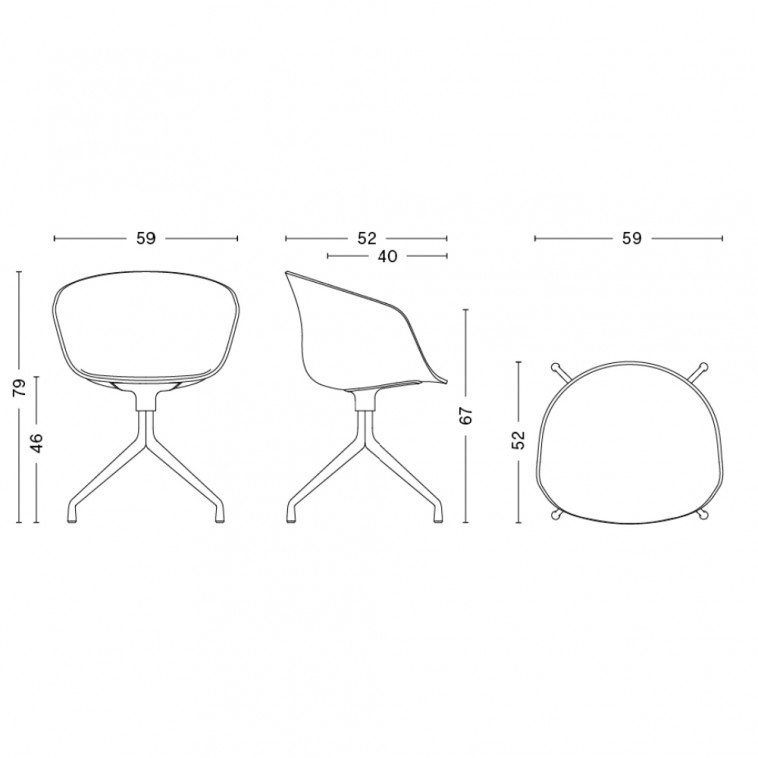 La silla AAC 20 transmite una expresión más formal que sus homólogas de la serie con patas de madera gracias a su base giratoria fundida en aluminio.