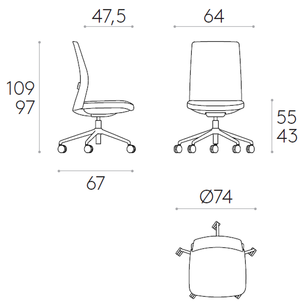 ESITT representa una revolución en el mundo de las sillas operativas. Su diseño vanguardista esconden elementos ergonómicos de alta calidad. Esta colección combina la comodidad de las sillas de oficina de alta gama, la integración perfecta de características ergonómicas y el estilo sofisticado que caracteriza a nuestra marca. Las sillas ESITT se adaptan perfectamente a la tendencia actual de crear espacios de trabajo acogedores y hogareños, sin renunciar al cumplimiento de los estándares ergonómicos internacionales más exigentes. Cada detalle ha sido cuidadosamente pensado, lo que se traduce en una colección versátil, cómoda y estéticamente agradable que encaja perfectamente en entornos de trabajo modernos, ya sea en oficinas profesionales o en el hogar. Silla de trabajo giratoria con respaldo de malla técnica, soporte lumbar regulable y movimiento sincro. La altura del asiento es regulable.