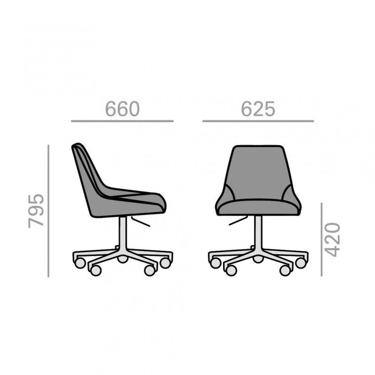 El asiento Alya SI-1555, es una silla giratoria con asiento y respaldo tapizado. Puede subir el pistón hasta 20 mm. Posee una base central giratoria de aluminio de 5 ruedas regulable la altura.