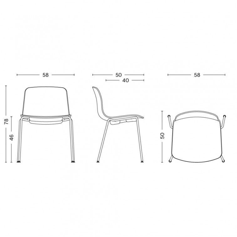 Diseñada teniendo en cuenta la funcionalidad y la versatilidad, las cuatro patas se sitúan bajo el asiento en un ángulo redondeado para enmarcar la carcasa orgánica y vertical, que ofrece una comodidad y una apilabilidad óptimas.