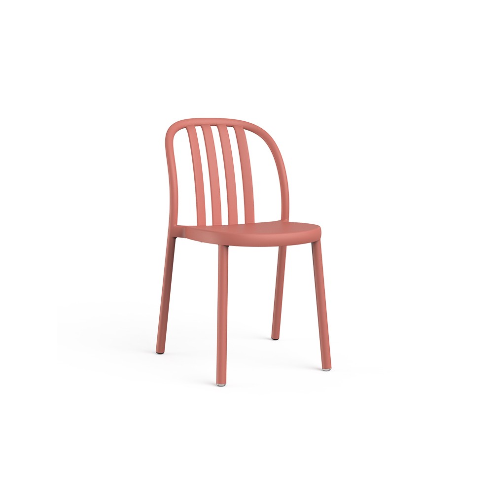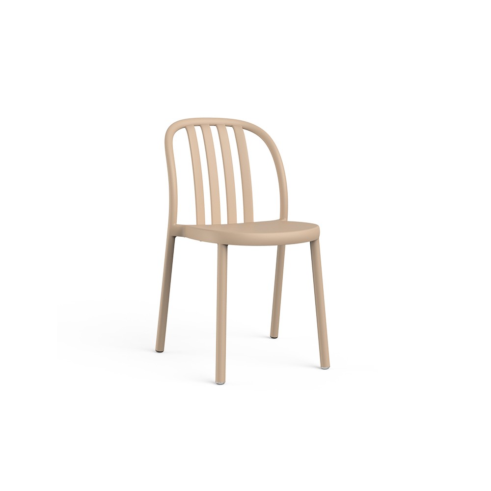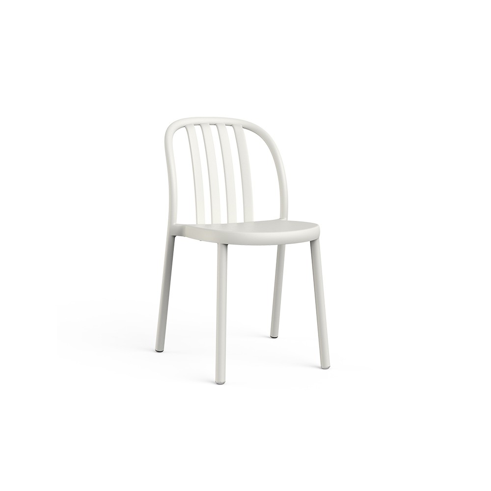 Moderna, contemporánea pero con recursos marcadamente clásicos, como las lamas del respaldo. Tiene una silueta simple y poco exagerada, busca un hueco tanto en interiores como exteriores apelando a los que añoran cierto clasicismo sin aspavientos. Descúbrela con brazos con el sillón de la misma colección.