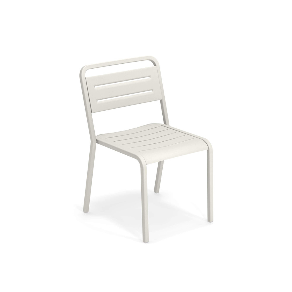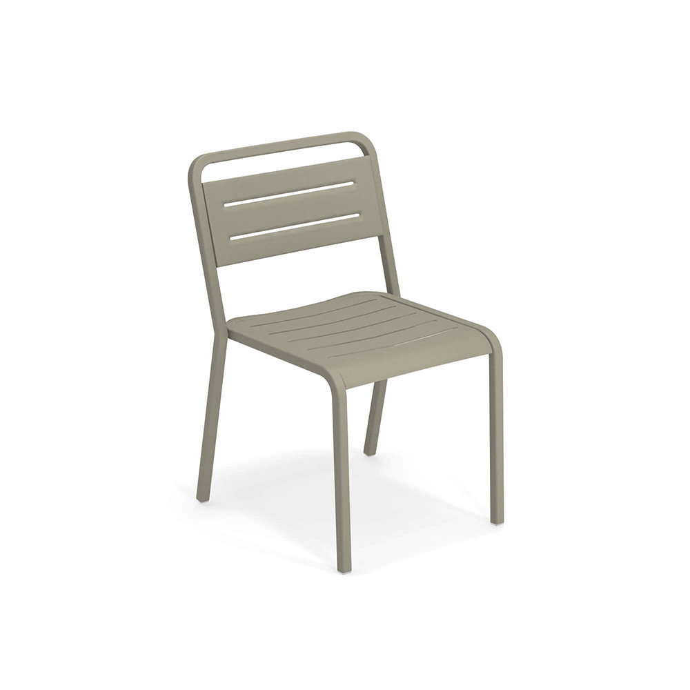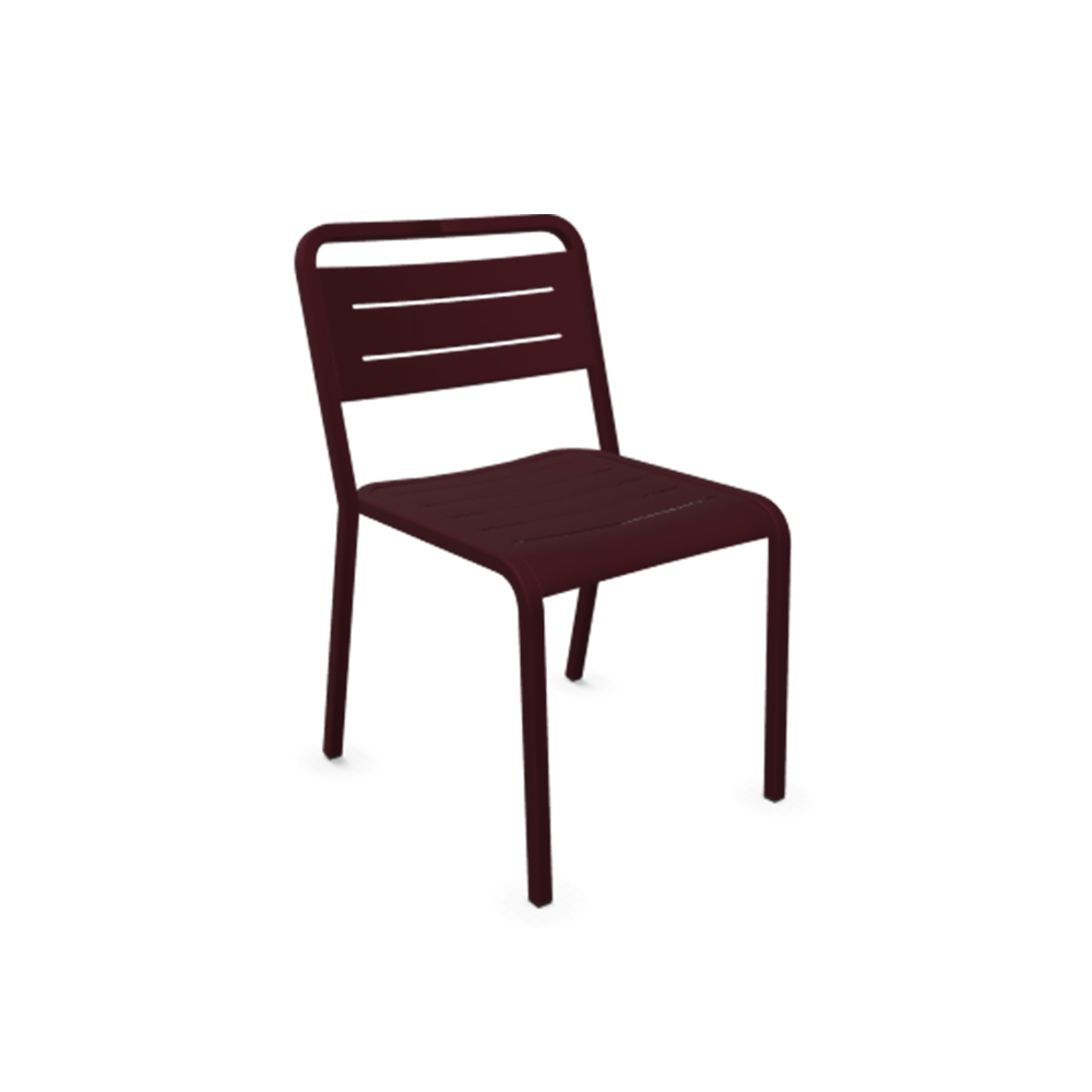 Silla liviana y apilable de aluminio barnizado. Dimensiones: 51x55x81h cm.