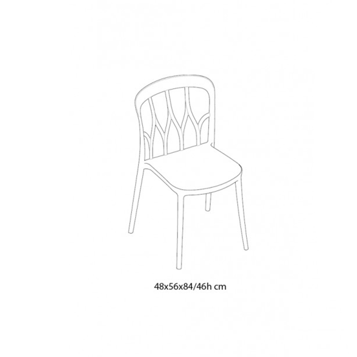 Silla apilable de polipropileno y fibra de vidrio reciclable. Dimensiones: 48x56x84h cm.