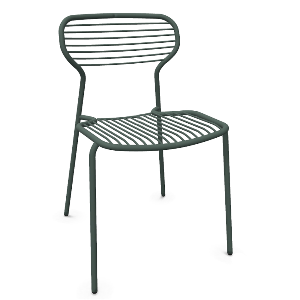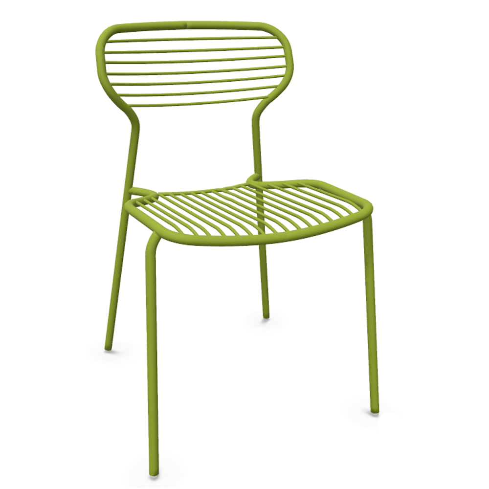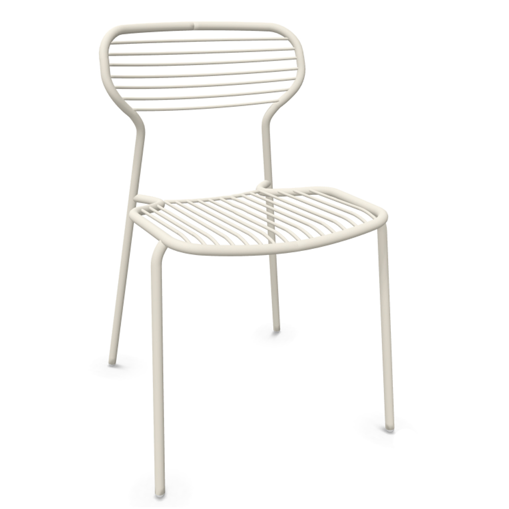 Silla apilable minimalista de acero con cojín opcional. Dimensiones: 50x52x78h cm.