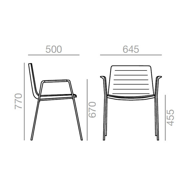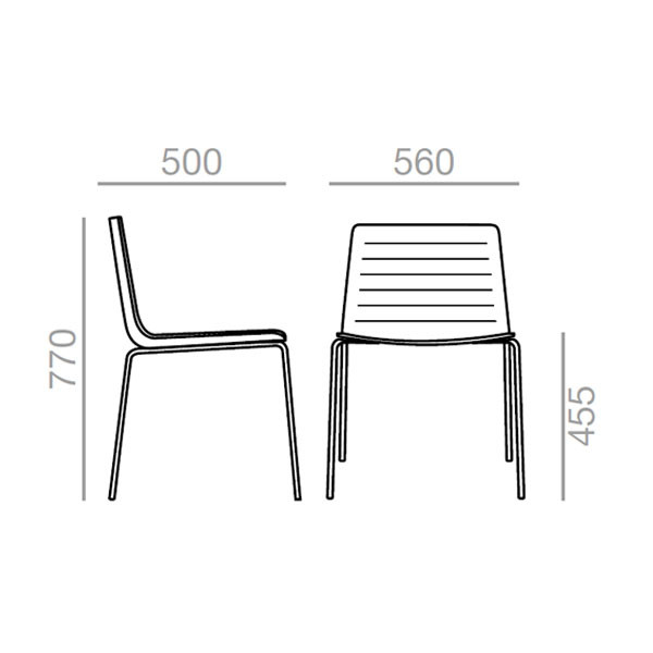Silla con asiento y respaldo de termopolímero y base de 4 patas de tubo de acero.
