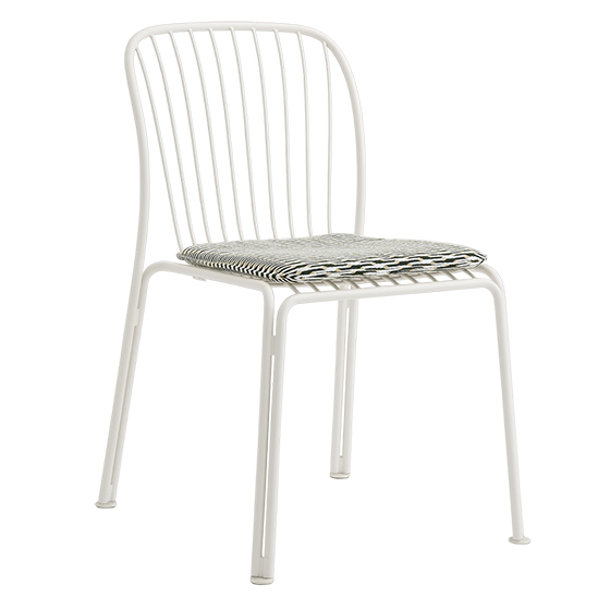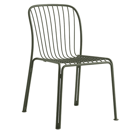 Silla outdoor en acero con recubrimiento en polvo. Dimensiones: 58,8x59,4x83,8h cm.